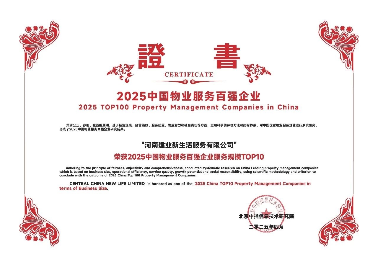 2025年4月18日,由中指研究院、中國房地產(chǎn)TOP10研究組主辦的“2025中國物業(yè)服務(wù)百強(qiáng)企業(yè)研究成果會”在雄安新區(qū)舉行。建業(yè)新生活以其卓越的服務(wù)品質(zhì)和持續(xù)的業(yè)務(wù)創(chuàng)新,蟬聯(lián)“2025中國物業(yè)服務(wù)百強(qiáng)企業(yè)”第11位、“2025中國物業(yè)服務(wù)百強(qiáng)企業(yè)服務(wù)規(guī)模TOP10”。